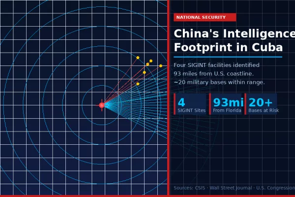 Defensa, MundoLa presencia de Inteligencia de China en Cuba: Lo que muestra la evidenciaLa posición geográfica de Cuba —a 93 millas (150 kilómetros) al sur de Florida— ha convertido a la…